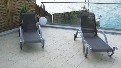 Pllaka me ngjyra pastel dhe sipërfaqe të lara, ideale për tarracat më të bukura, ballkone apo rrugica për këmbësorë. Lartësia: 3,80 cm Sasia në paleta: 60 cp Pesha për copë: 14 kg Formate: 60x30 cm, 40x40 cm